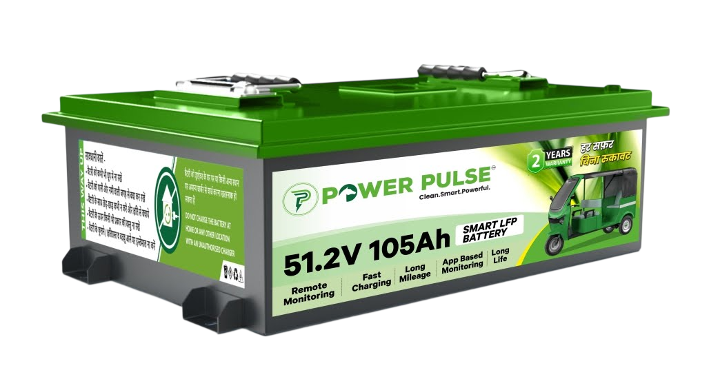 PowerPulse E-Rickshaw Lithium Battery Packs deliver high power output and extended range for electric rickshaws. Engineered for heavy-duty daily use with advanced thermal management and intelligent BMS for maximum safety and longevity.